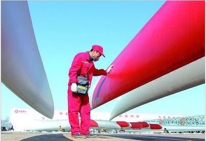 打上“中國制造”烙印的風電葉片已在20多個國家和地區安裝發電。據專家介紹,“十二五”以來,江蘇連云港中復連眾復合材料集團有限公司不斷進行技術創新,多項技術和產品填補國內空白,逐漸形成“技術引進-消化吸收-迅速形成規模生產能力-聯合設計-自主創新”的持續創新模式,具備年產1萬只兆瓦級風力機葉片的能力,打上“中國制造”烙印的風電葉片已在全國上百個風電場以及阿根廷、英國、日本等20多個國家和地區安裝發電。圖為日前,質檢人員在對一批風電葉片進行出廠前的質量檢驗。