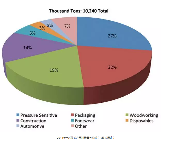 美國專注于高分子聚合物和化工領域的咨詢公司 Kusumgar, Nerlfi & Growney 的最新一項研究成果顯示,2014年全球膠類產品的消費量已達1024萬噸,價值294億美元。自2009年全球經濟危機以來,膠類產品的消費量依然保持了適度的增長?梢灶A計,到2019年,全球膠類產品消費量的年增長率將保持在5%左右;具體而言,歐洲和北美的膠水消費量將保持2%的年增長率,而以中國為膠類產品消費主導的亞太地區,則預計會達到7%的年增長率。