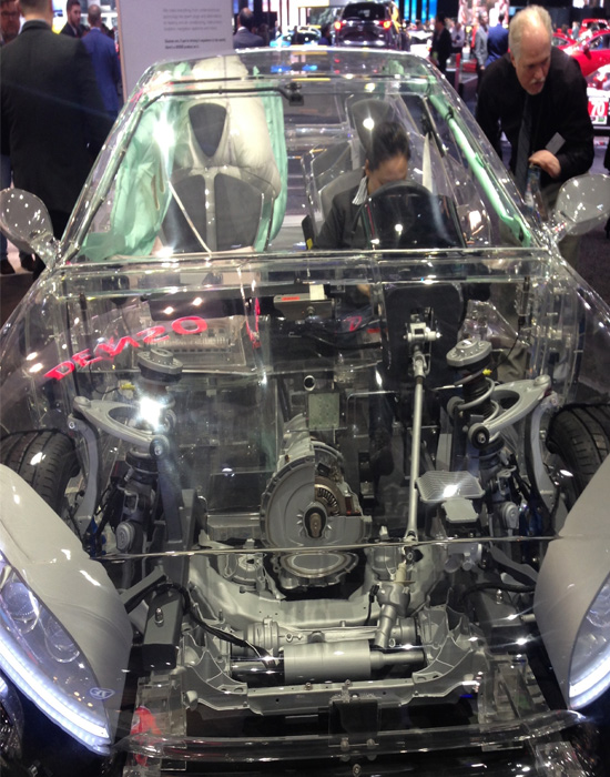 Wilkerson表示,天合汽車在2007年法蘭克福車展上第一次展示該丙烯酸汽車模型的產(chǎn)品,但是該產(chǎn)品是靜態(tài)的。在底特律科博會(huì)展中心展出時(shí),允許參觀者打開(kāi)一個(gè)車門,觸摸丙烯酸的座位和其他部分。