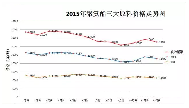 2015年聚氨酯三大原料價(jià)格走勢(shì)圖
