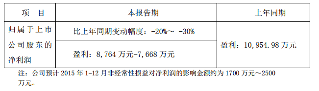 1.業(yè)績預(yù)告期間:2015 年 1 月 1 日—2015 年 12 月 31 日