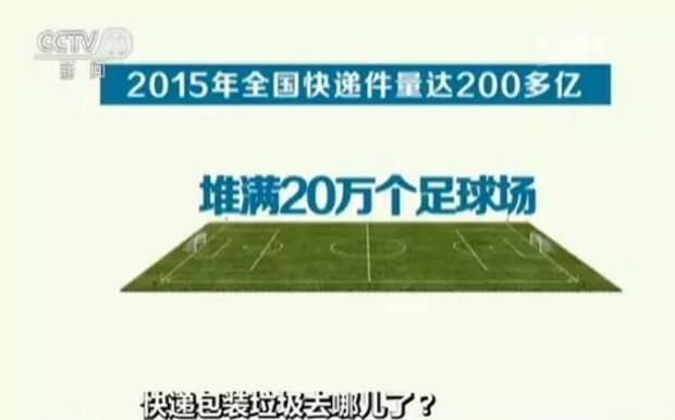 國家郵政局統計,2015年全國快遞業務量完成206億件,最高日處理量超過1.6億件。按平均一個包裹的包裝箱0.2公斤計算,去年產生了40萬噸的包裝箱,可以堆滿20萬個足球場。預計2016年中國快遞業務量將完成275億件。
