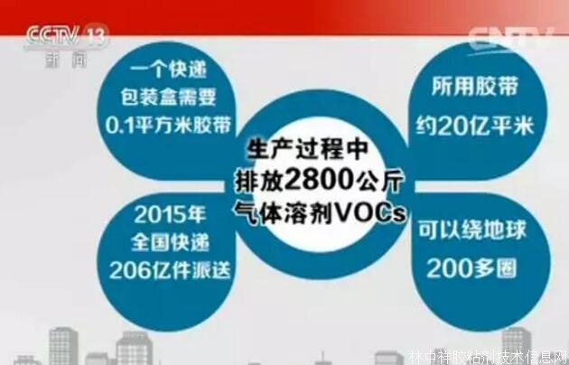 而按照一個快遞包裝盒需要0.1平方米膠帶計算,2015年所用膠帶約20億平米,可以繞地球200多圈,這些膠帶在生產過程中就會排放出2800公斤氣體溶劑VOCs。如果焚燒,VOCs會污染空氣破壞臭氧層形成霾狀物。