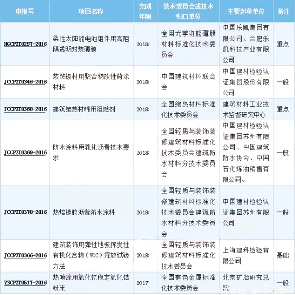 2016年第一季度行業標準制修訂計劃涉及290項,其中推薦性標準288項,指導性標準2項。該批公示項目中的部分標準如下表所示,均為首次制定的推薦性標準,由原材料工業司主管。