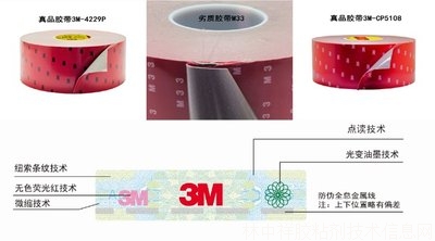 首先,觀察商標與卷心的顏色。3M正品膠帶的卷心和離型紙上會印有“3M”商標,顏色搭配以不同型號區分,例如:3M-4229P膠帶采用紅色離型紙配白色“3M”商標,3M-CP5108膠帶采用紅色離型紙配黑色“3M”商標。