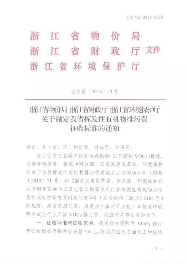 浙江省-浙江省物價局 浙江省財政廳 浙江省環境保護廳 關于制定我省揮發性有機物排污費征收標準的通知