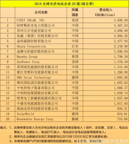 本次“2016全球光伏電站20強(qiáng)排行榜”由“2016全球光伏電站企業(yè)20強(qiáng)排行榜(綜合類)”、“2016中國(guó)光伏電站企業(yè)20強(qiáng)排行榜(綜合類)”、“2016中國(guó)光伏電站投資企業(yè)20強(qiáng)”、“2016中國(guó)光伏電站EPC總包企業(yè)20強(qiáng)”、“2016中國(guó)光伏組件企業(yè)20強(qiáng)”、“2016中國(guó)光伏逆變器企業(yè)20強(qiáng)”、“2016中國(guó)光伏支架企業(yè)20強(qiáng)”七大類榜單組成。榜單根據(jù)上一年度全球光伏電站行業(yè)各企業(yè)全年主營(yíng)產(chǎn)品經(jīng)營(yíng)收入、出貨量、并網(wǎng)裝機(jī)規(guī)模等財(cái)務(wù)數(shù)據(jù)的高低排出先后名次。