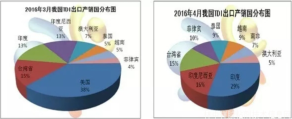 2016年我國(guó)3月4月TDI出口產(chǎn)量分布圖