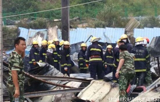 筆者趕到現(xiàn)場看到,鐵皮廠房約300平方米,爆炸后基本上被夷為了平地,炸飛的鐵皮和玻璃散落一地,有些鐵皮被震出幾十米遠(yuǎn)掛在了樹枝上,現(xiàn)場散發(fā)著很濃重的氣味,加工廠的地上擺放著很多75千克和150千克裝的膠水桶。事發(fā)加工廠就坐落在一條高速公路旁邊,工廠對面有很多正在建設(shè)的樓房。