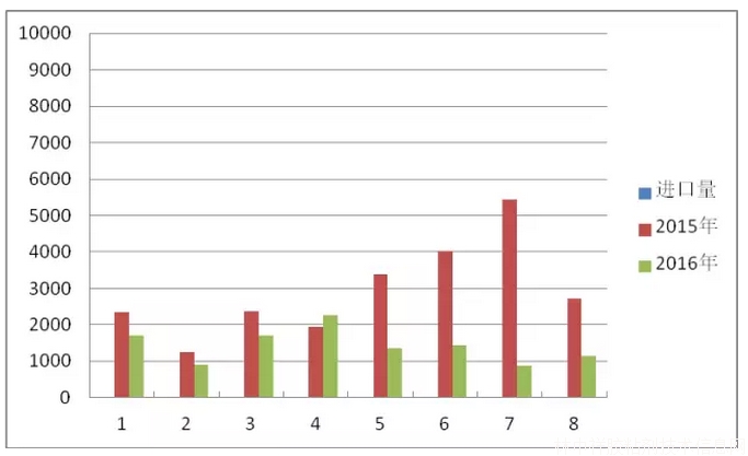 圖1 我國2016年1-8月與2015年同期TDI進口量對比圖(單位:噸)