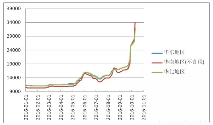 圖3 2016年國內TDI市場價格走勢圖(單位:元/噸)
