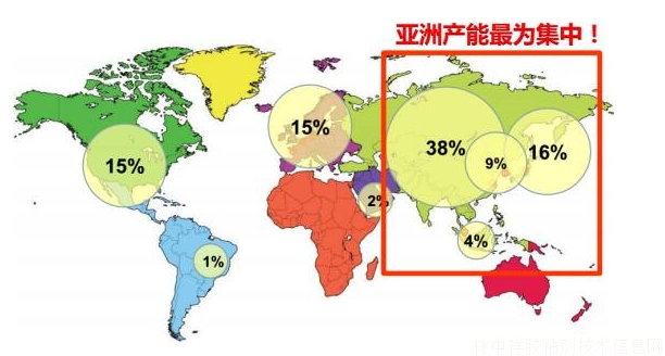 67%的全球產(chǎn)能集中在亞洲,其中中國(guó)貢獻(xiàn)38%