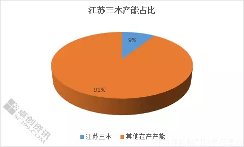 以下是江蘇三木丙烯酸及酯裝置產能在國內的占比份額。2016年,國內丙烯酸在產及待產產能共計286萬噸,下半年實際在產產能僅在219萬噸。上海華誼因搬遷停車,萬洲石化停車,以上兩家企業我們均預計最早可在2017年1月份重啟。山東宏信、福建濱海、煙臺萬華第三期裝置,我們預計中短期內維持停車狀態。近期亦有,浙江衛星平湖裝置停車、齊魯開泰高青裝置停車、中海油檢修停車等短期停車企業。在運行的丙烯酸裝置產能中,江蘇三木產能占比在9%,停車后影響程度可想而知。