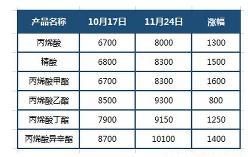 自歐洲巴斯夫爆炸后 丙烯酸酯漲幅統計