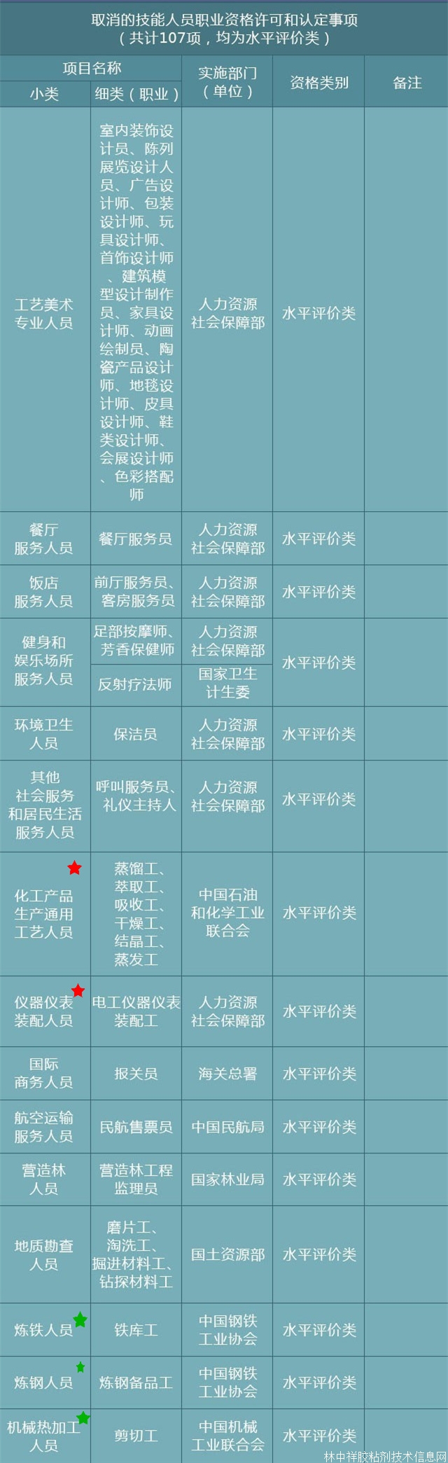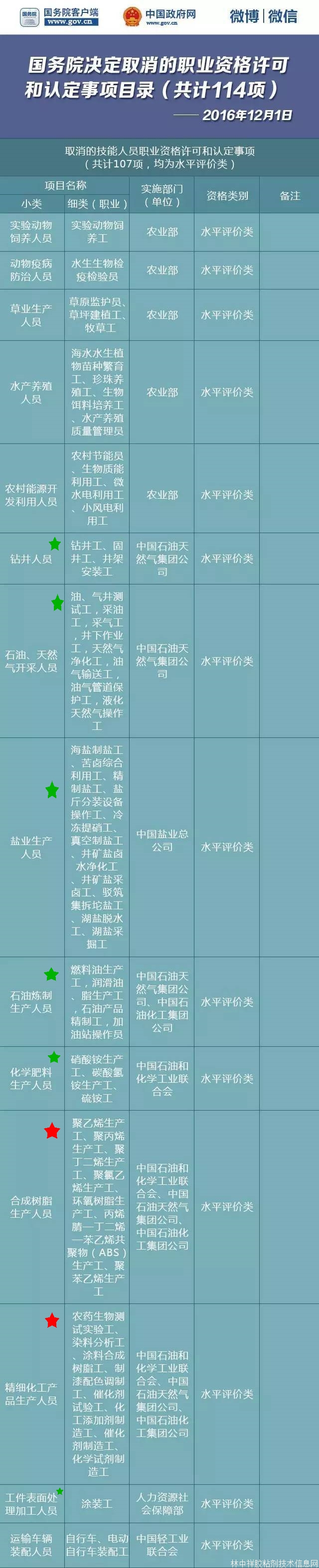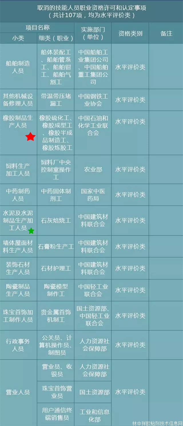 近日,國務院印發《關于取消一批職業資格許可和認定事項的決定》,》(簡稱《決定》),共取消114項職業資格。其中包括合成樹脂生產人員、精細化工產品生產人員和橡膠制品生產人員。