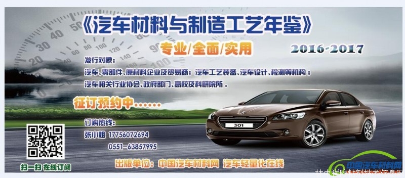 《2017汽車材料與制造工藝年鑒》正在征集資料及編輯過程中,希望能得到您的意見和支持。如需了解年鑒更多內容,請進入《汽車材料與制造工藝年鑒》 論壇版塊http://www.qichecailiao.com/bbs/portal.php?mod=topic&topicid=8。