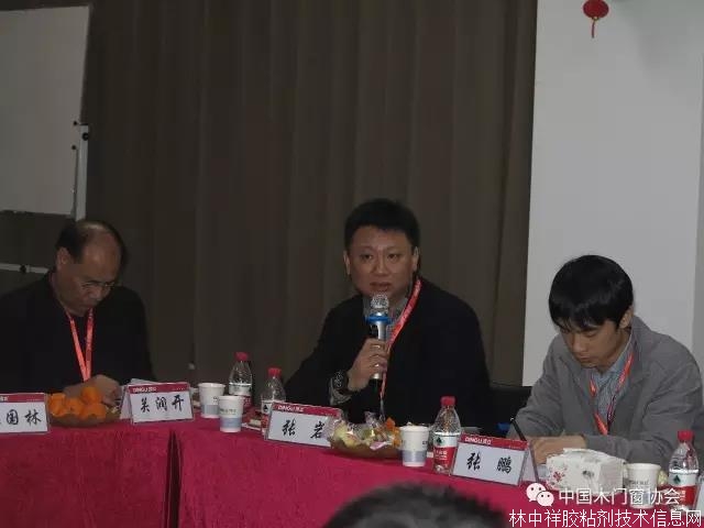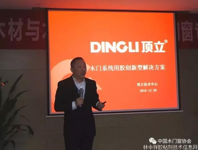 近一小時(shí)的參觀后,“2016年中國木材與木制品流通協(xié)會木門窗專業(yè)委員會會長會議”正式開始,會議由常務(wù)副會長張鵬主持。首先,本次會議的承辦方頂立新材料科技有限公司董事長周閏陽致歡迎辭,他對大家的到來表示熱烈的歡迎,同時(shí)感謝協(xié)會領(lǐng)導(dǎo)給予盡東道主之誼的機(jī)會,希望木門行業(yè)同仁感受到頂立的真誠與專業(yè),作為膠粘劑領(lǐng)域的優(yōu)質(zhì)供應(yīng)商,會繼續(xù)為木門行業(yè)的發(fā)展提供有力的保障。隨后,頂立總工程師羅平向大家詳細(xì)介紹了木門系統(tǒng)用膠創(chuàng)新型解決方案,并對要點(diǎn)進(jìn)行解答。