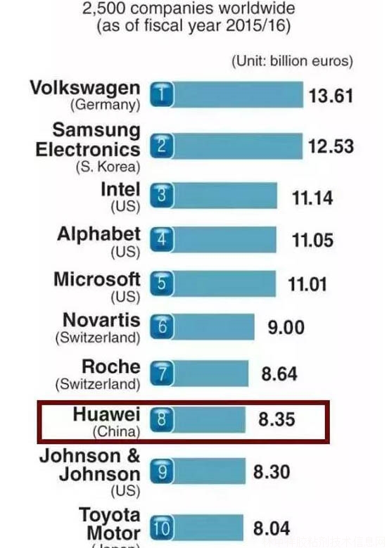 8.華為(HUAWEI) 中國 83.58億歐元 科技:硬件和設備