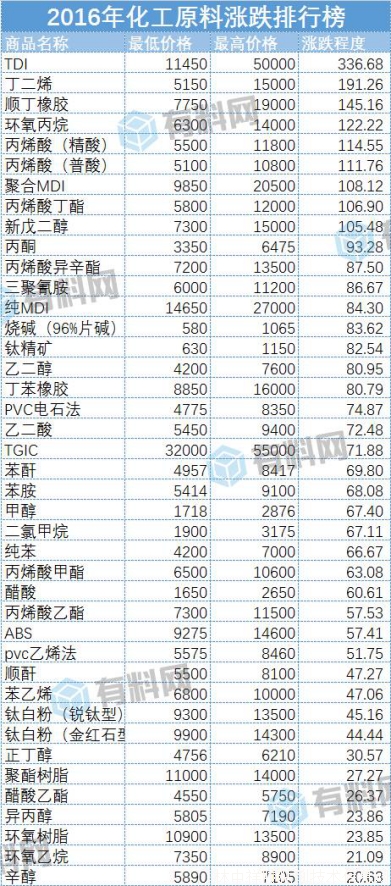 今年以來,特別是下半年,不少化工產品價格“漲”聲一片。2016年,對于化工行業來說,注定是不平凡的一年。