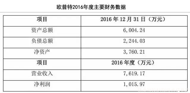 數(shù)據(jù)顯示,歐普特2016年實(shí)現(xiàn)營收7619.17萬元,凈利潤為1015.97萬元。