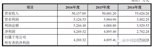 集泰化工業績連續三年下降。以上表格顯示2014-2016年公司營業收入分別為5.363億元、5.060億元、5.014億元,同期凈利潤分別為2762.28萬元、4895.40萬元、4269.32萬元。