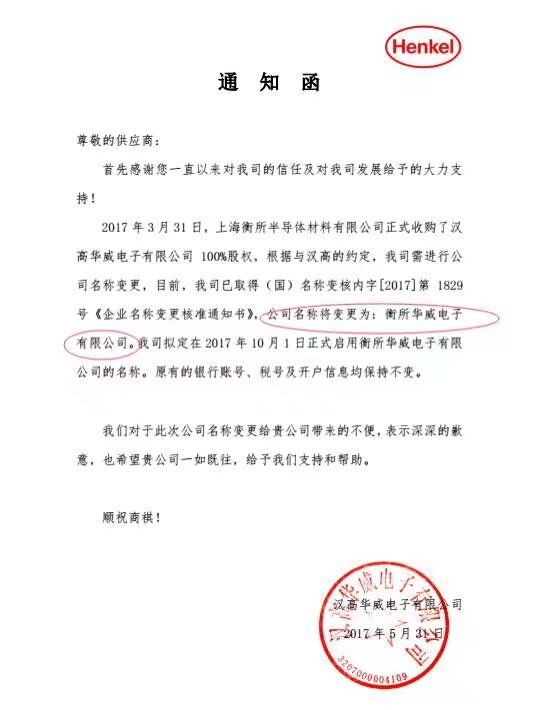漢高華威正式更名為衡所華威電子有限公司,,兩次被收購再次國產化.