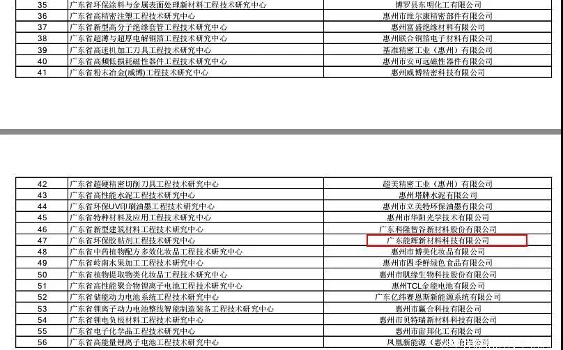 近日,廣東省科學技術廳在9月8日公示了《廣東省科學技術廳關于開展2017年度廣東省工程技術研究中心認定工作的通知》粵科公示〔2017〕10號,廣東能輝新材料科技有限公司被評定為“廣東省環保膠黏劑工程技術研究中心”。