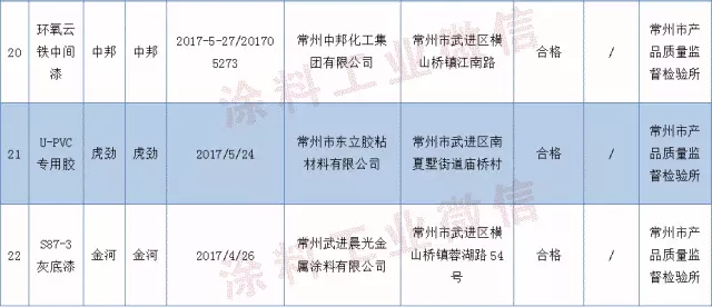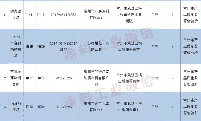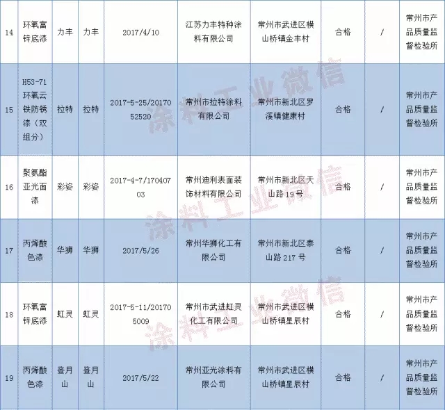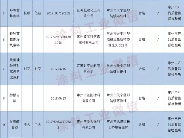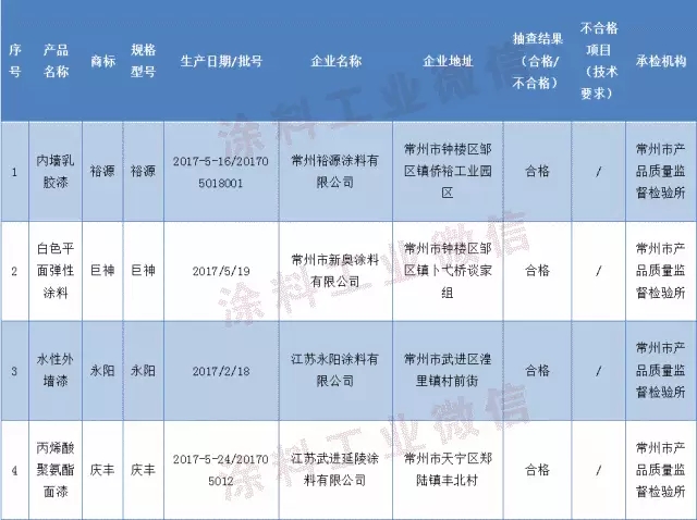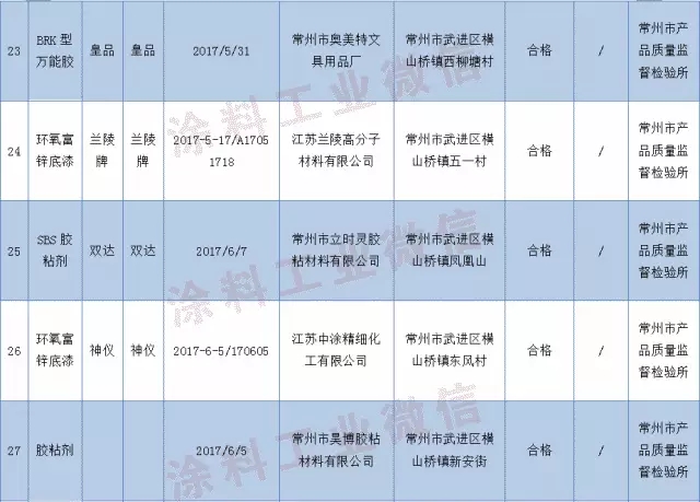 2017年涂料、膠粘劑產品質量市級監督抽查結果