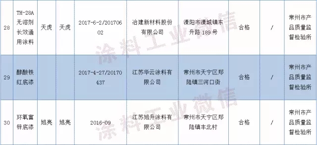 據常州市質量技術監督局官網通報的2017年涂料、膠合劑產品質量市級監督抽查結果,該局對常州市涂料、膠合劑生產企業進行了產品質量監督抽查,共抽查產品30批次,合格30批次,合格率100%。