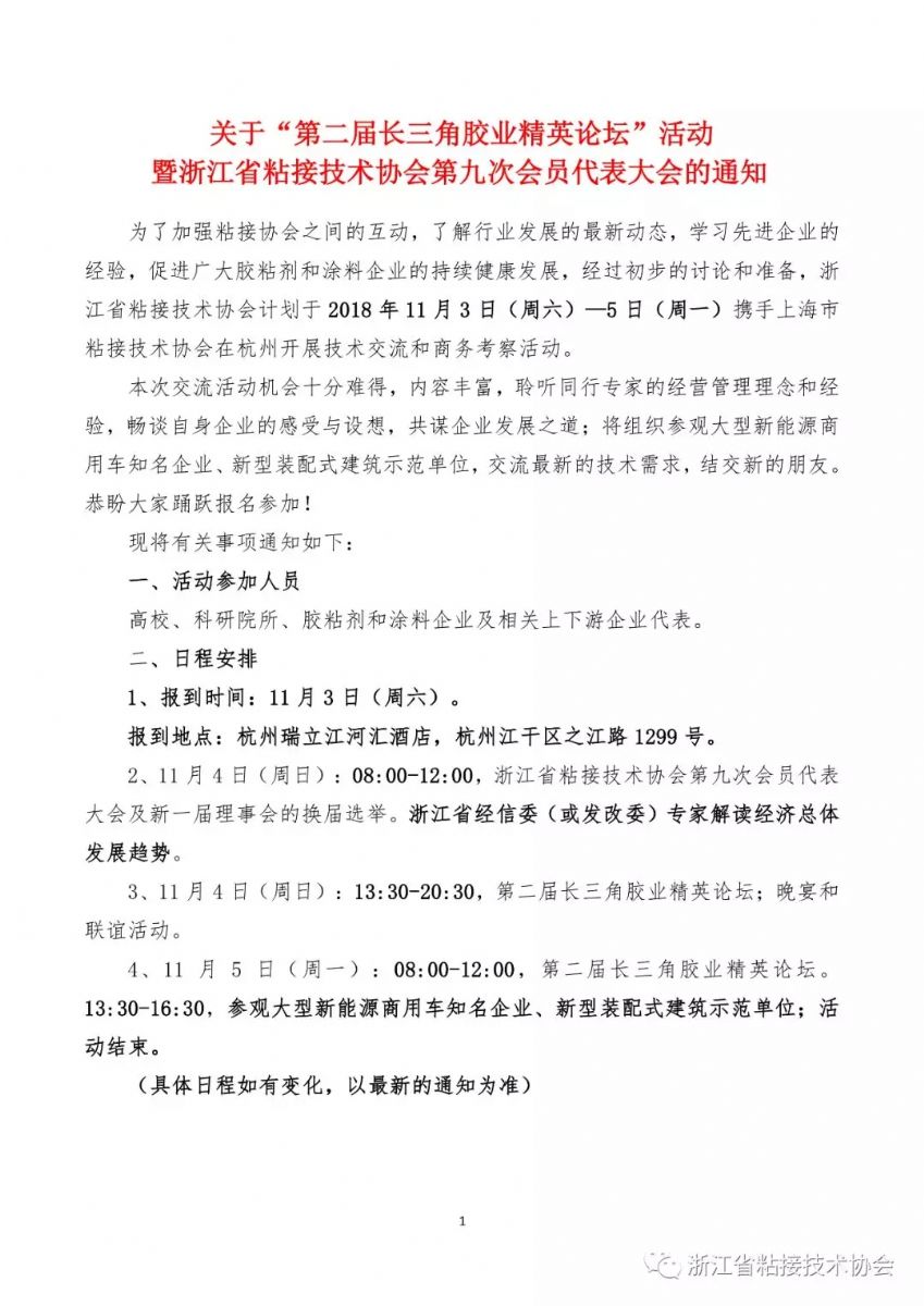 關(guān)于“第二屆長三角膠業(yè)精英論壇”活動 暨浙江省粘接技術(shù)協(xié)會第九次會員代表大會的通知