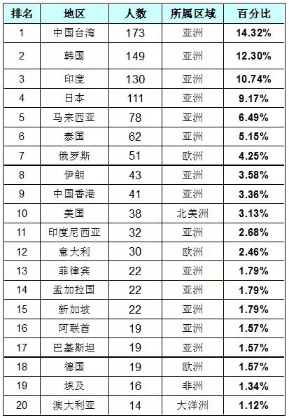 海外觀眾來源地 TOP 20: