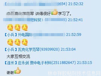 林中祥膠粘劑群(群號(hào):417857029)是自由開(kāi)放的的交流平臺(tái),我們歡迎更多的同仁到群上與大家交流,分享!感謝大家的關(guān)注與支持!