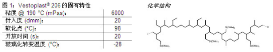 圖1顯示了Vestoplast®206的典型固有特性以及固化前的非晶化學結構。