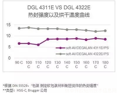 歐洲的酸奶蓋的熱封強(qiáng)度在7-10N/15mm, 由于中國(guó)的物流條件的差別,熱封強(qiáng)度的要求比歐洲高,一般在10-15N/15mm。如果超過(guò)15N/15mm,又會(huì)面臨消費(fèi)者投訴撕不開(kāi)或者撕斷蓋膜。贏創(chuàng)了解中國(guó)當(dāng)?shù)氐那闆r之后,推出了加強(qiáng)型熱封膠DEGALAN®4322E,熱封強(qiáng)度能夠達(dá)到10-15N/15mm。如果消費(fèi)者需要中低的熱封強(qiáng)度,也可以復(fù)配DEGALAN®4311E來(lái)調(diào)整熱封強(qiáng)度。